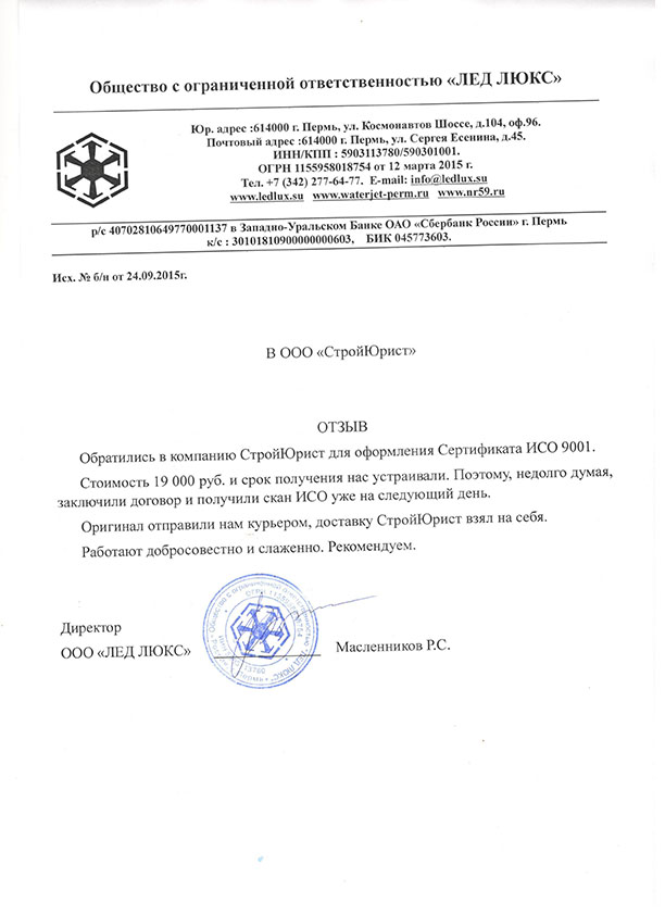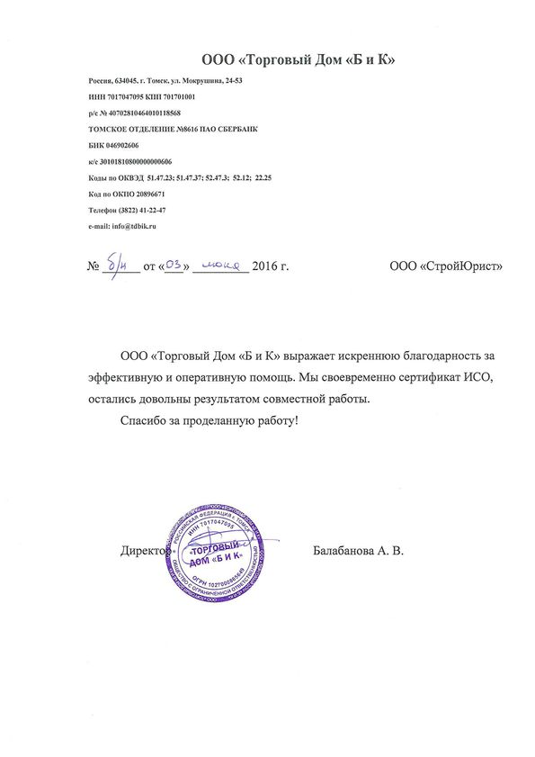 Отзывы клиентов "СтройЮрист" по ISO в Бийске