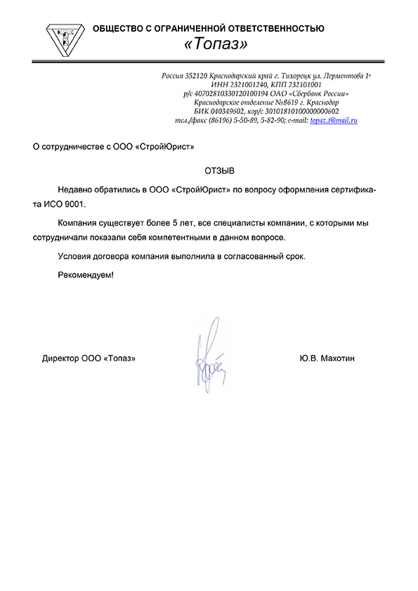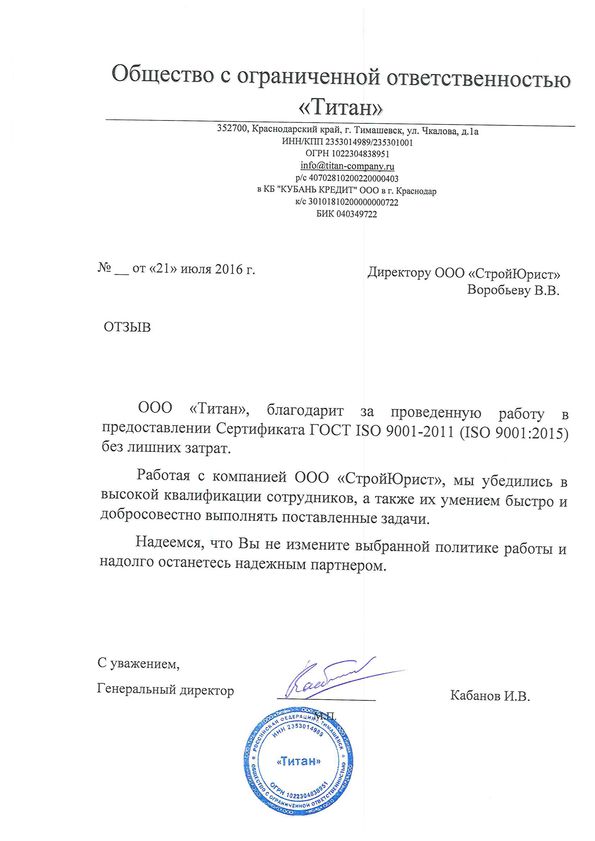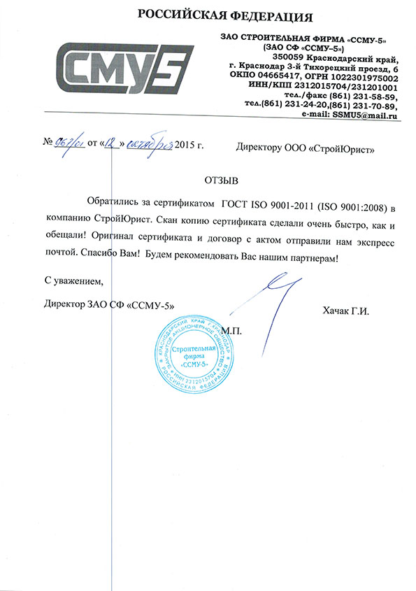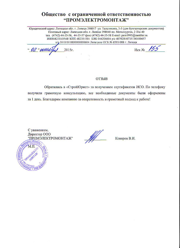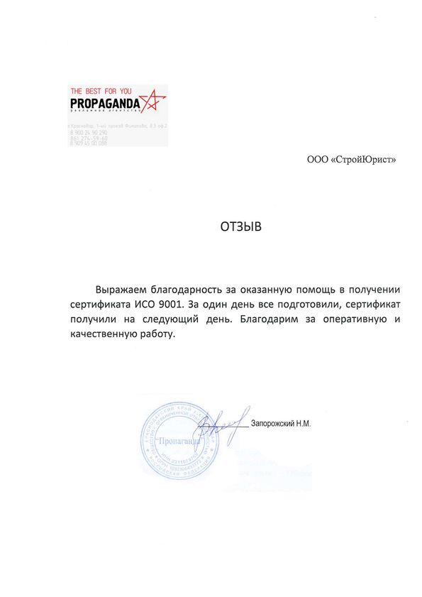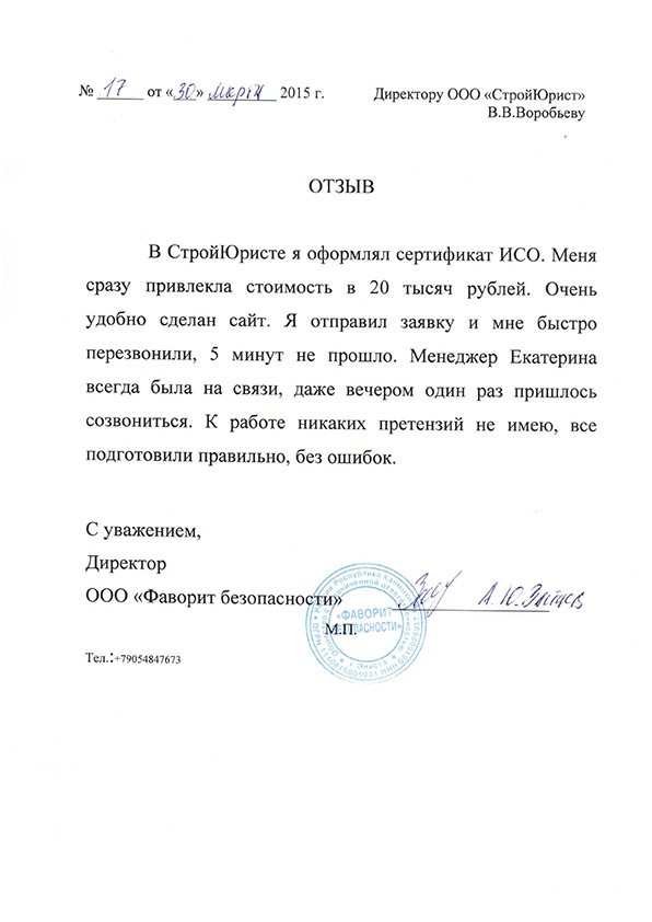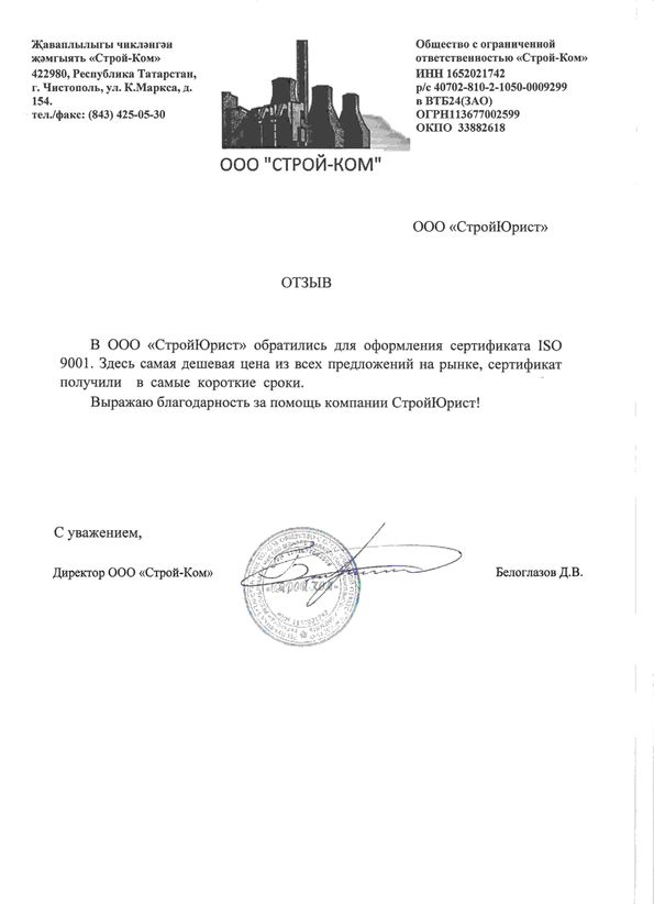 Отзывы клиентов "СтройЮрист" по ISO в Бийске