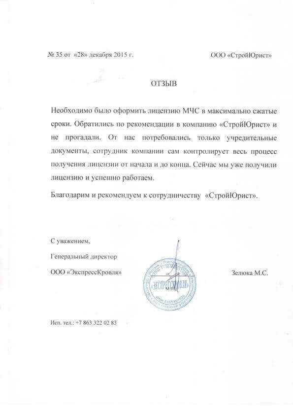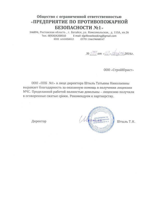 Отзывы клиентов "СтройЮрист" по лицензированию МЧС в Бийске