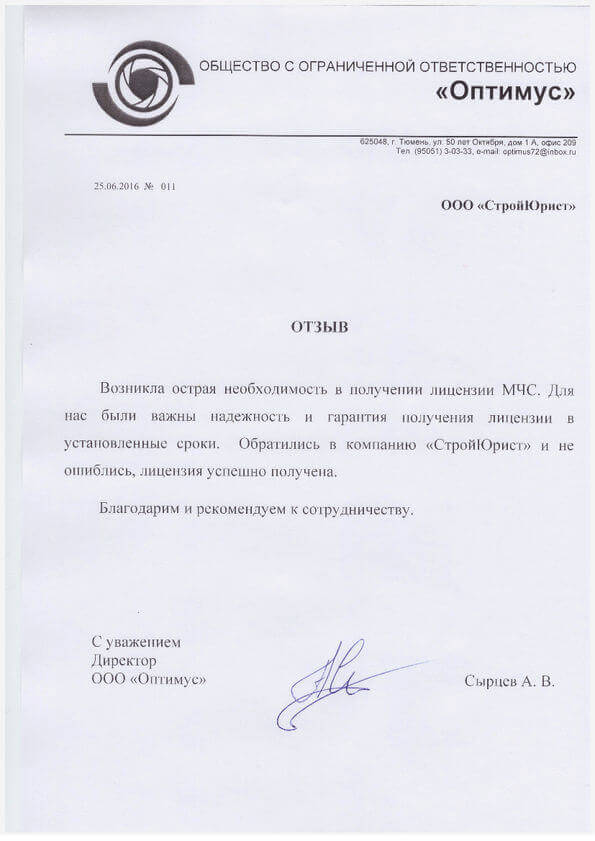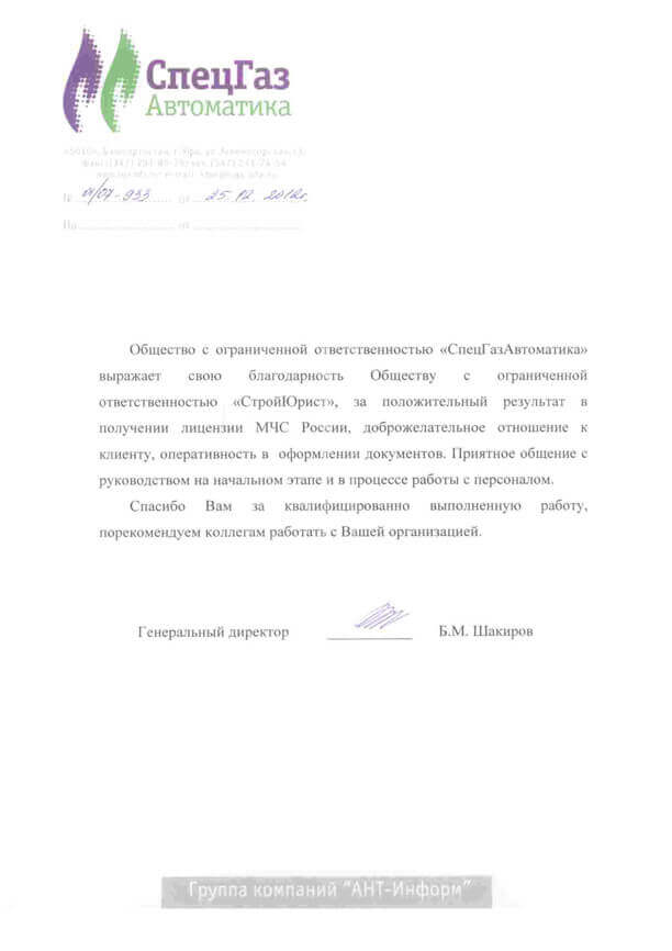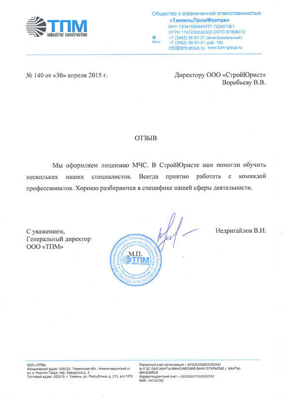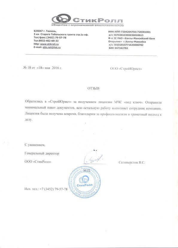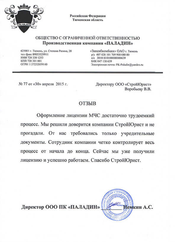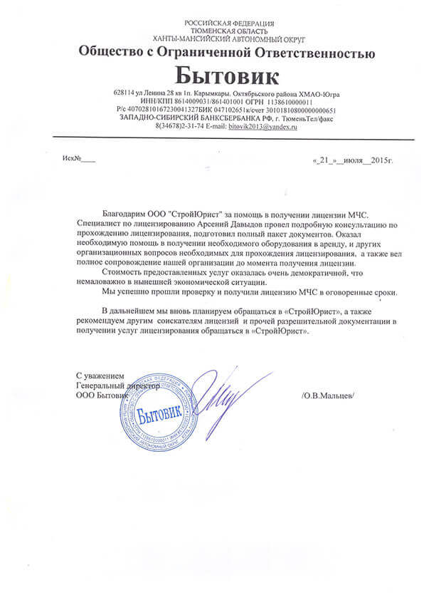 Отзывы клиентов "СтройЮрист" по лицензированию МЧС в Бийске