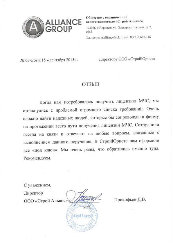 Отзывы клиентов "СтройЮрист" по лицензированию МЧС в Бийске