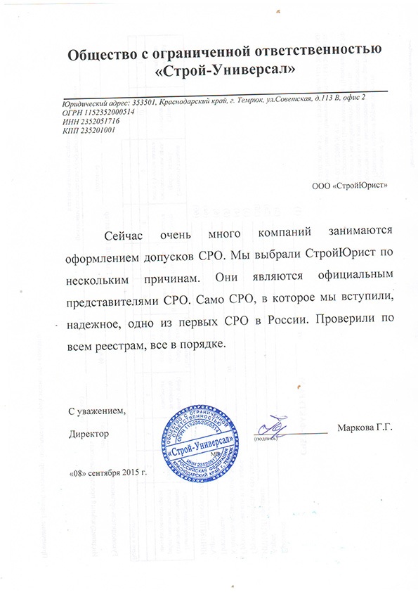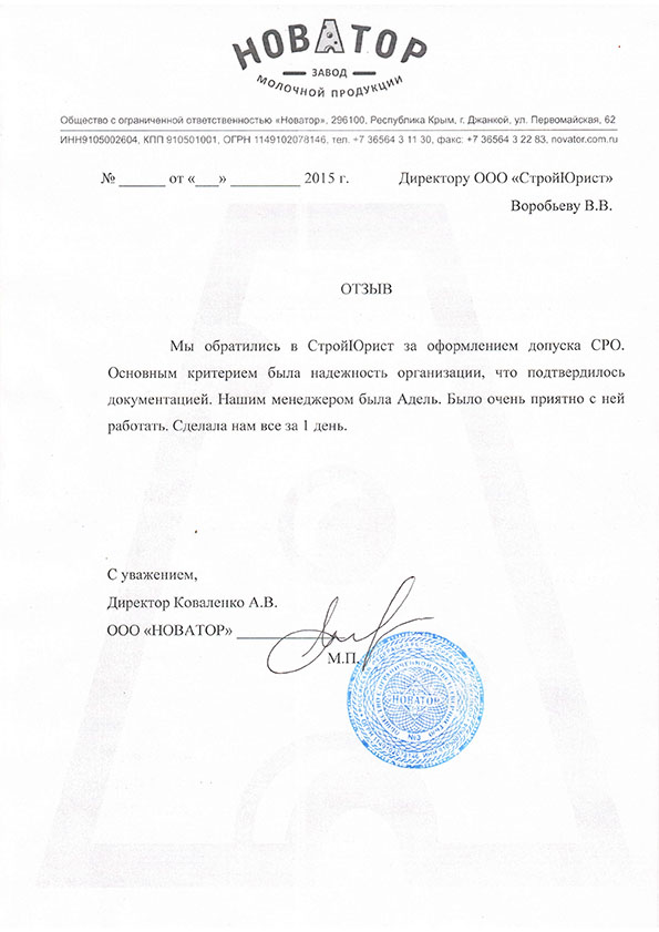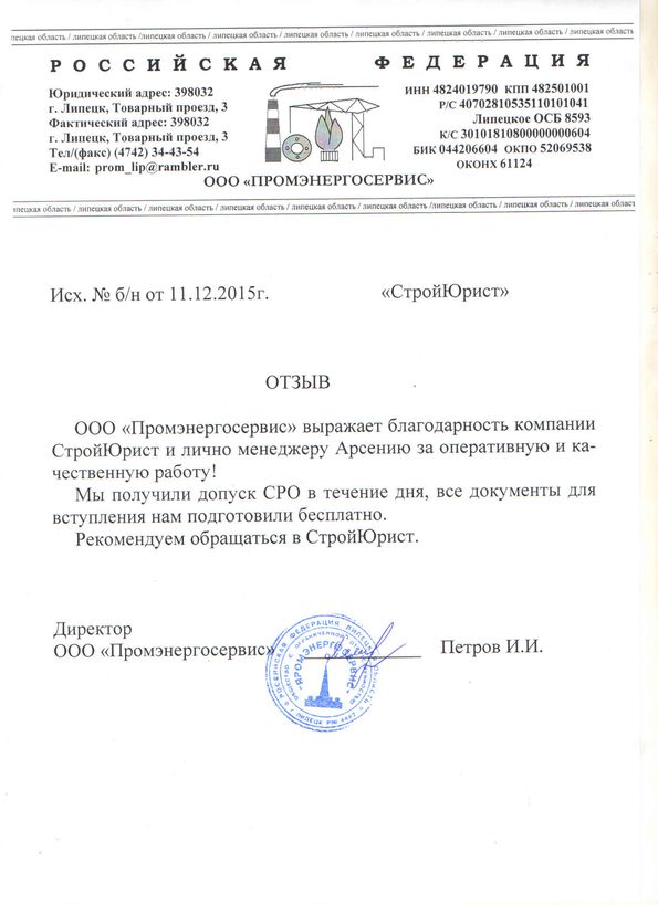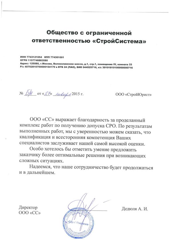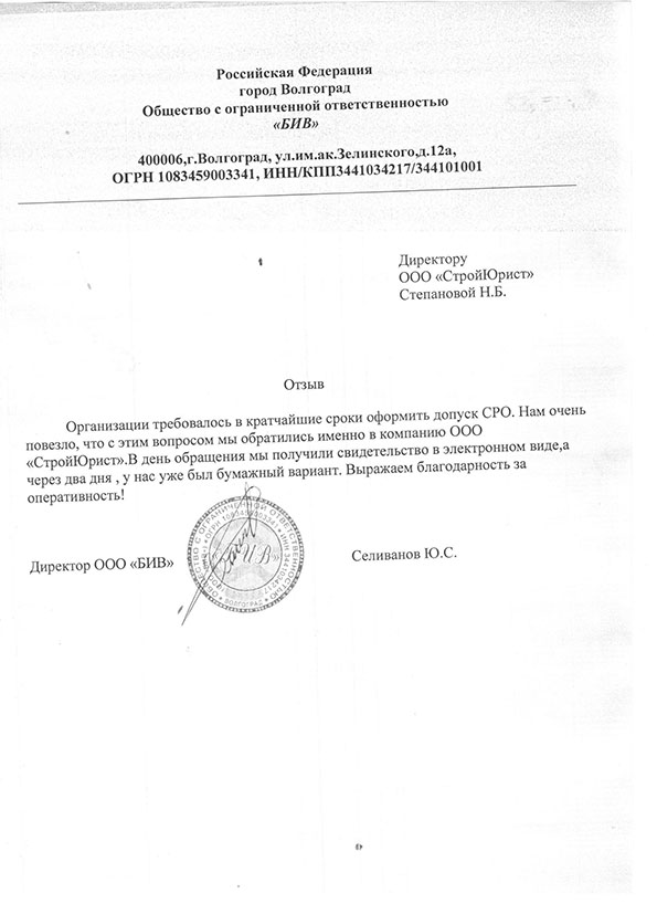 Отзывы клиентов "СтройЮрист" по вступлению в СРО в Бийске