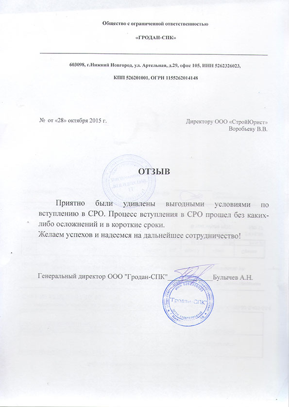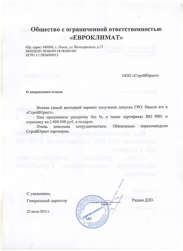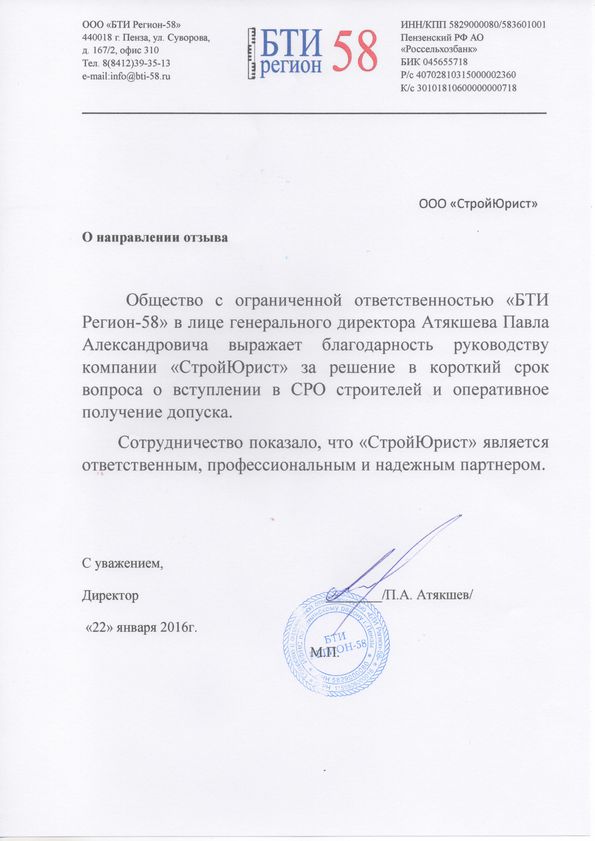 Отзывы клиентов "СтройЮрист" по вступлению в СРО в Бийске