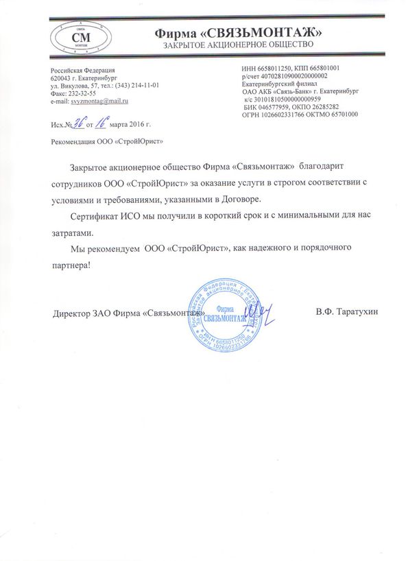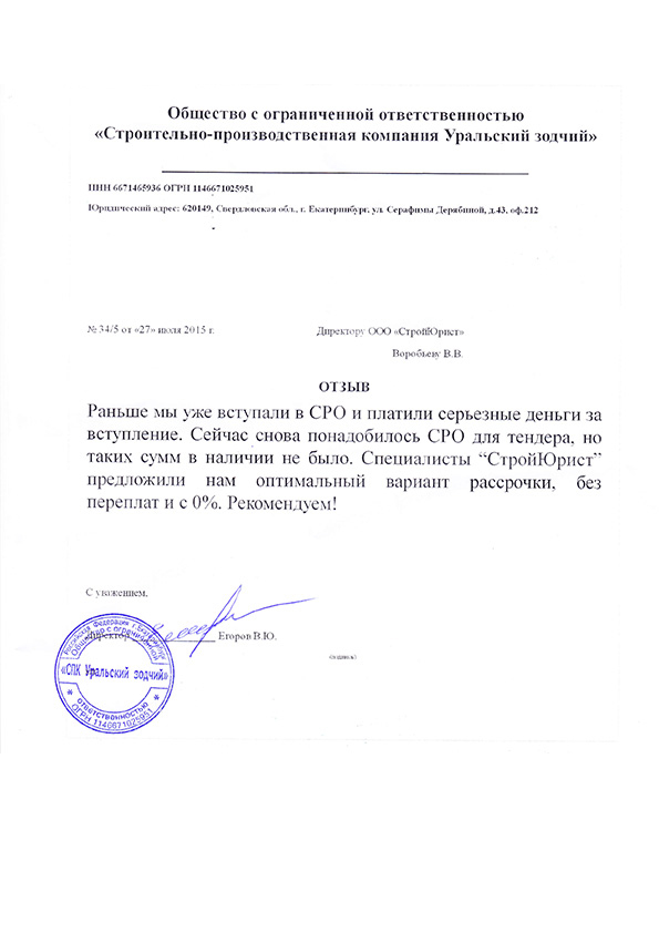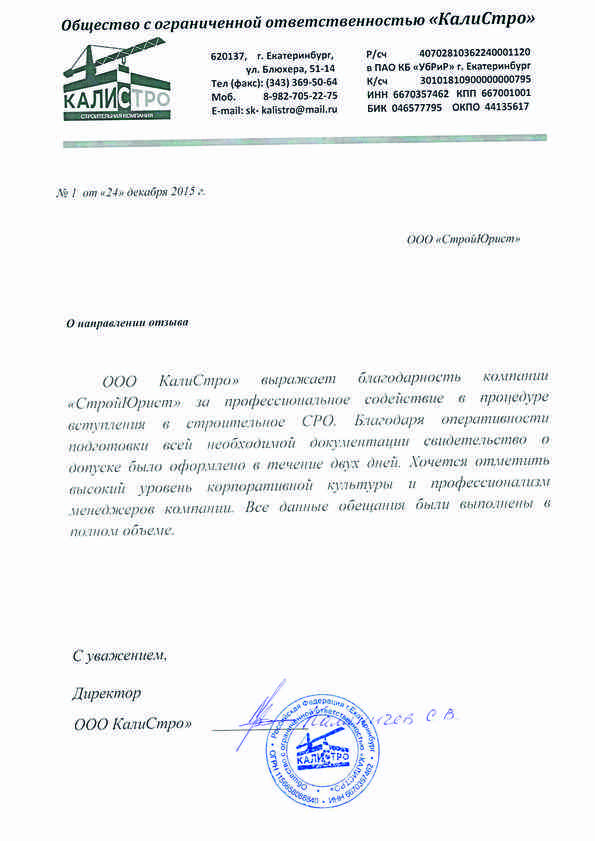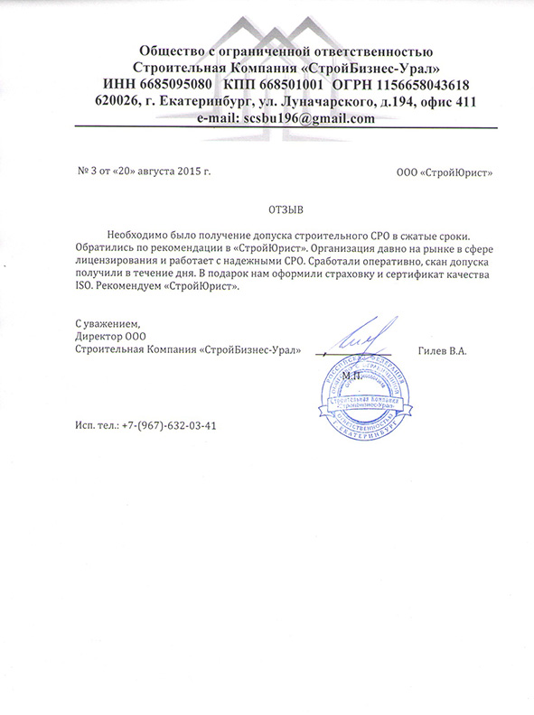Отзывы клиентов "СтройЮрист" по вступлению в СРО в Бийске