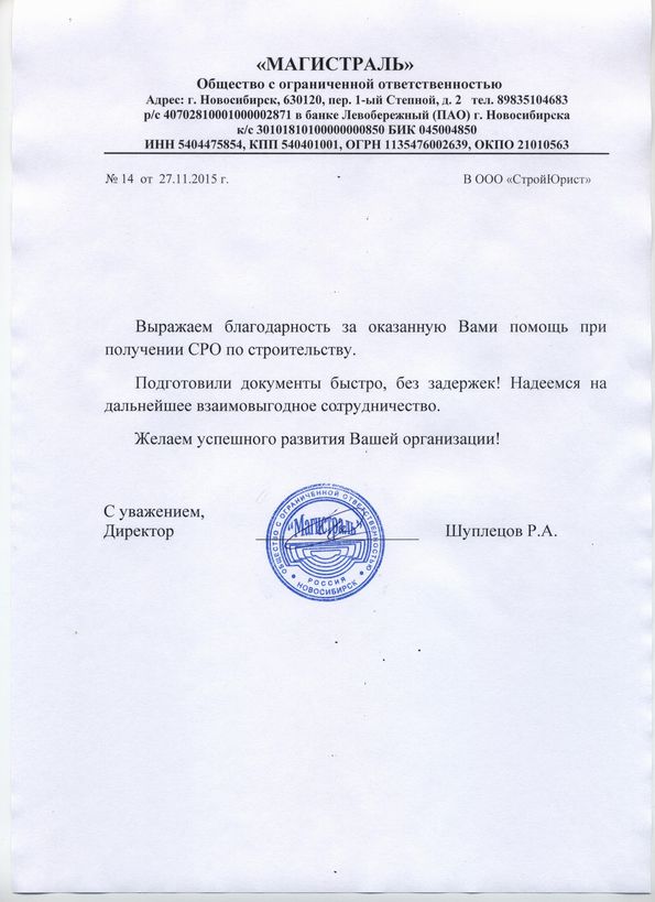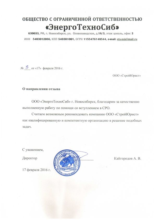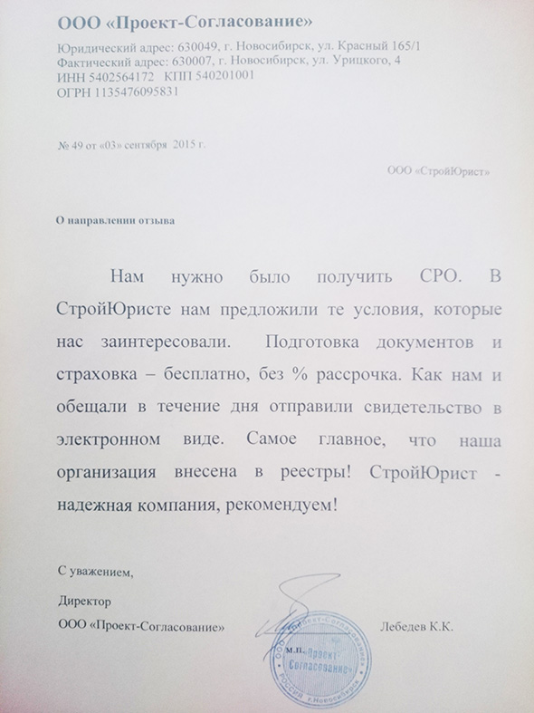 Отзывы клиентов "СтройЮрист" по вступлению в СРО в Бийске