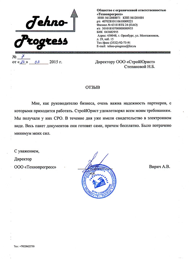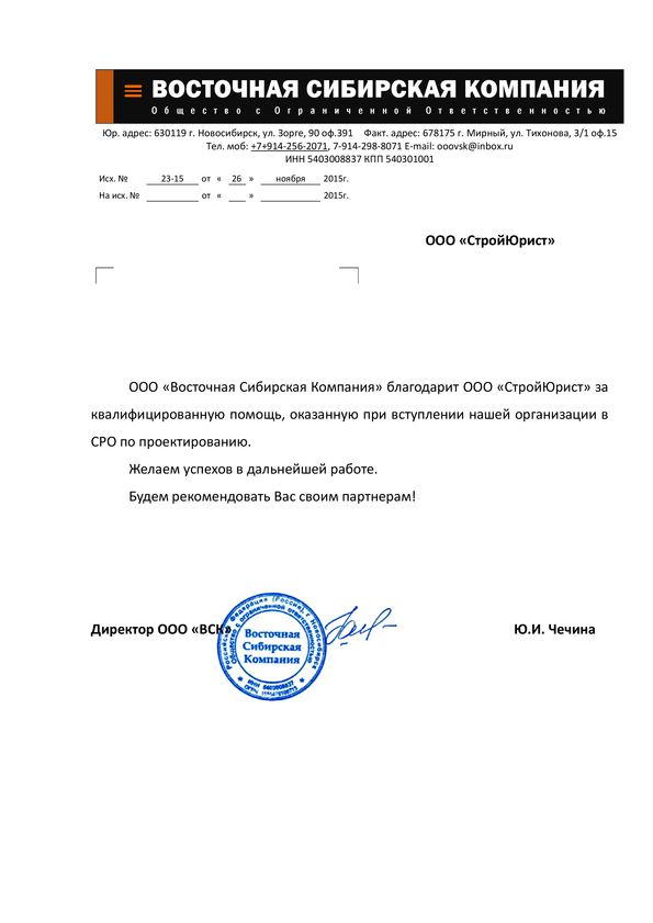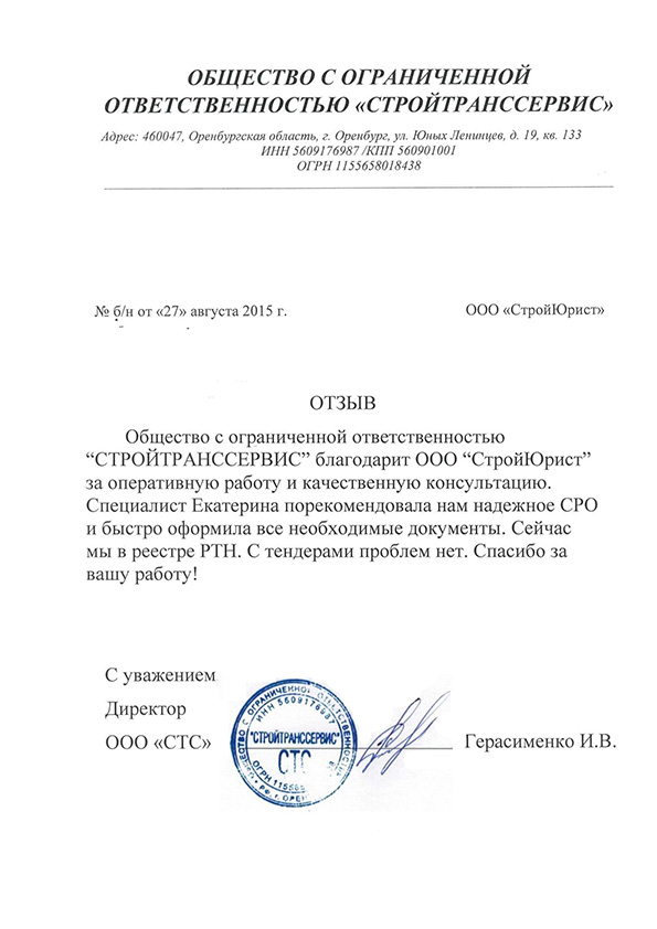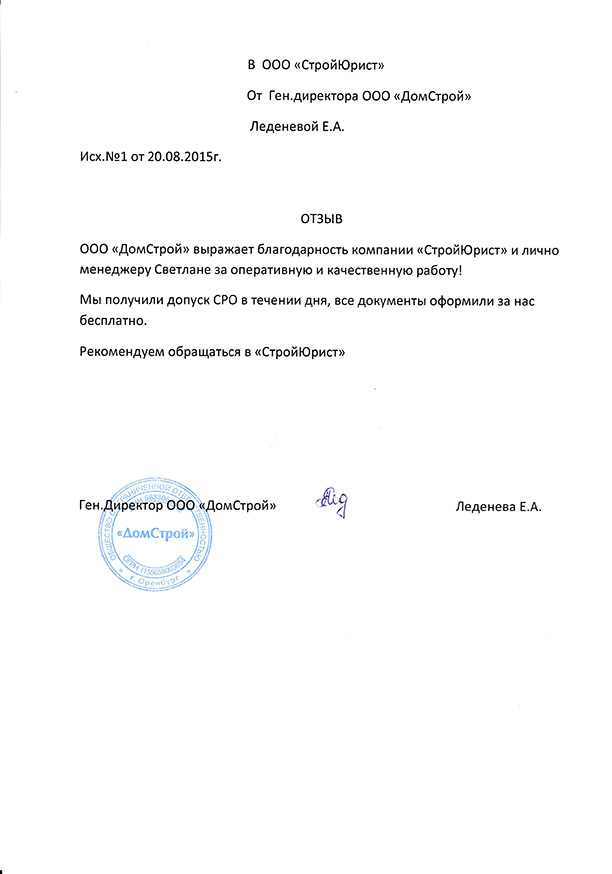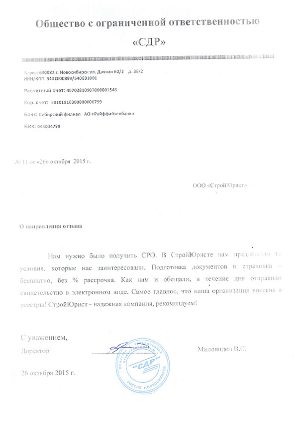 Отзывы клиентов "СтройЮрист" по вступлению в СРО в Бийске