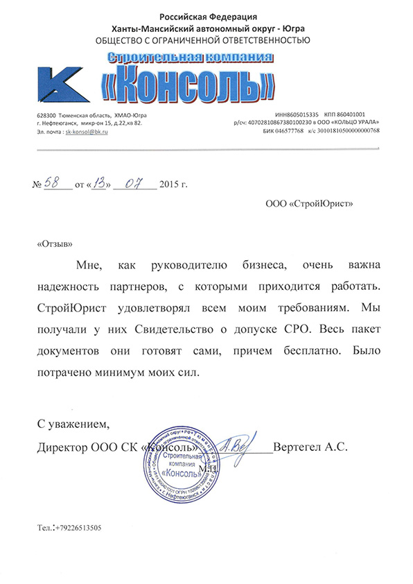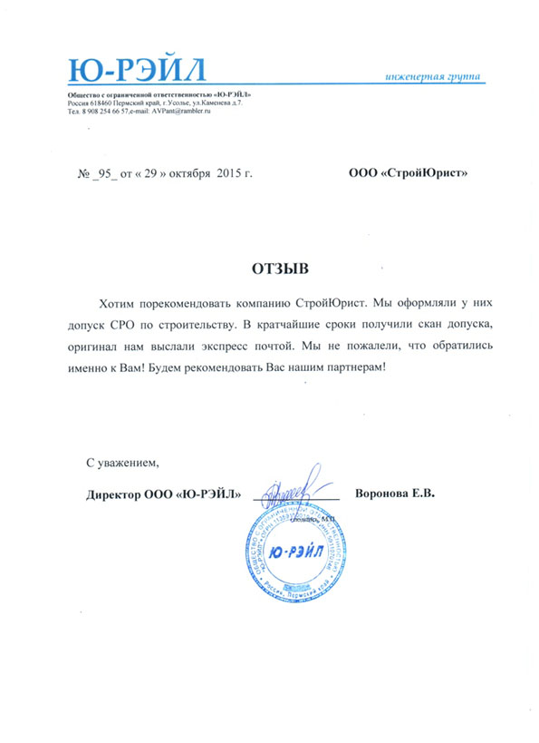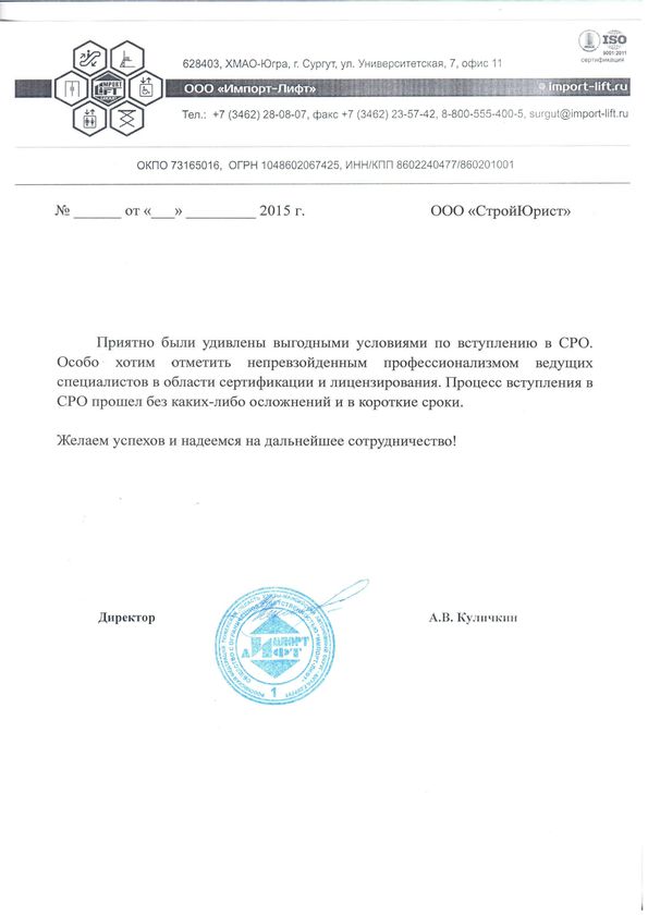 Отзывы клиентов "СтройЮрист" по вступлению в СРО в Бийске