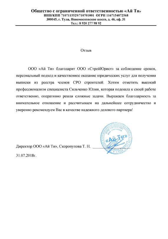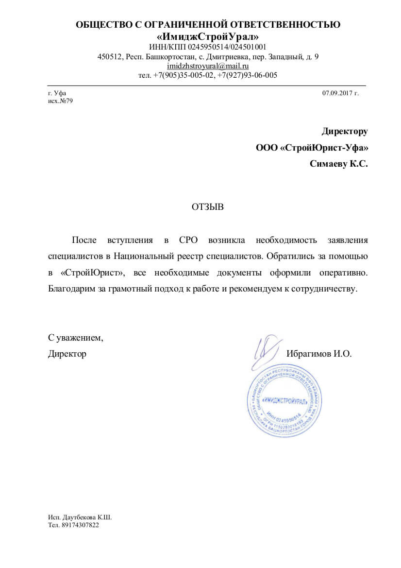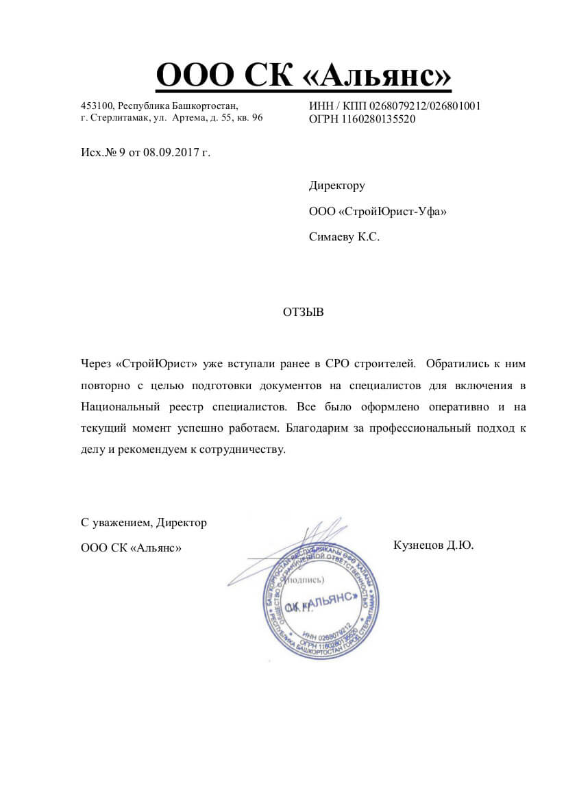 Отзывы клиентов "СтройЮрист" по вступлению в СРО в Бийске